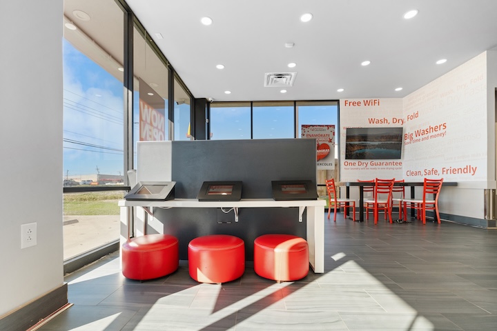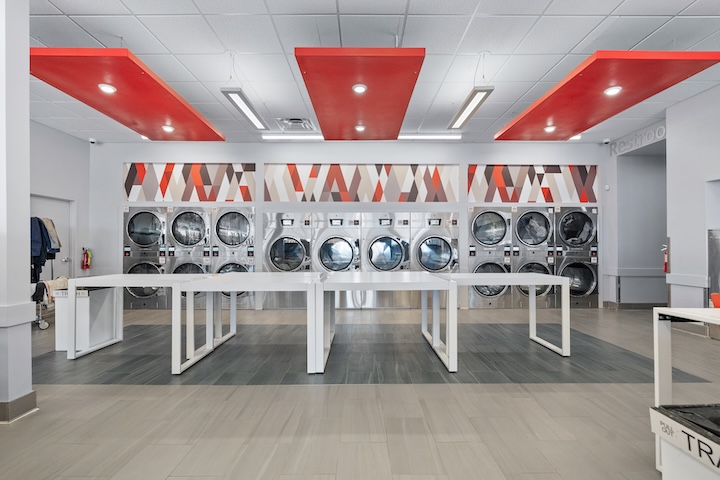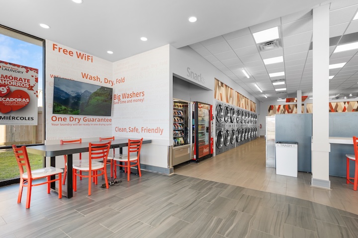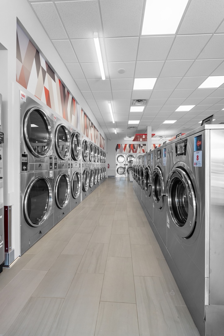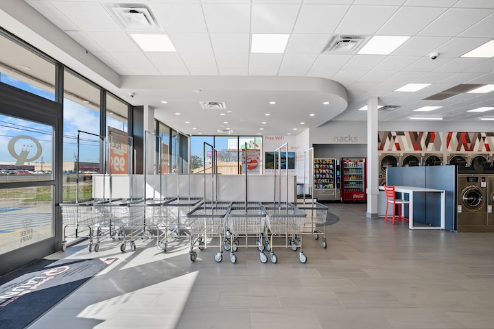 Summary: 4000 sq ft interior buildout converted from retail space to laundry facility.