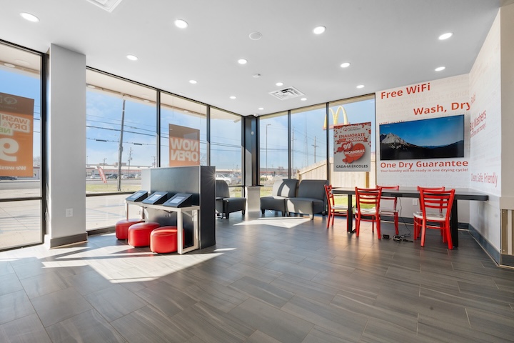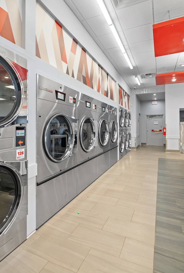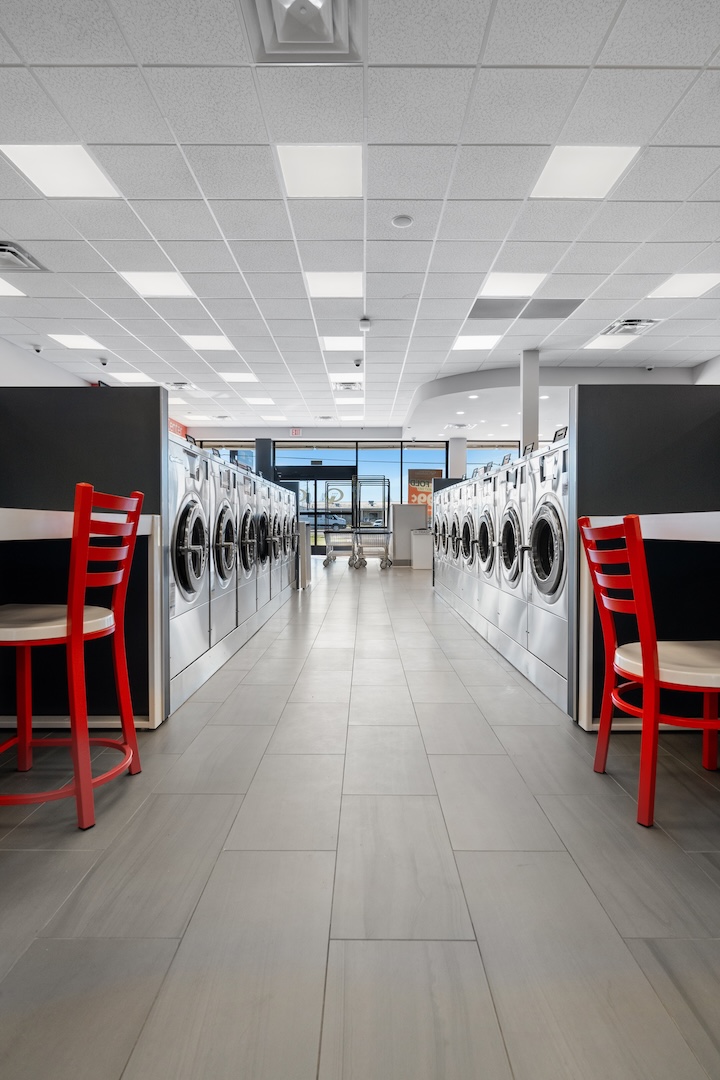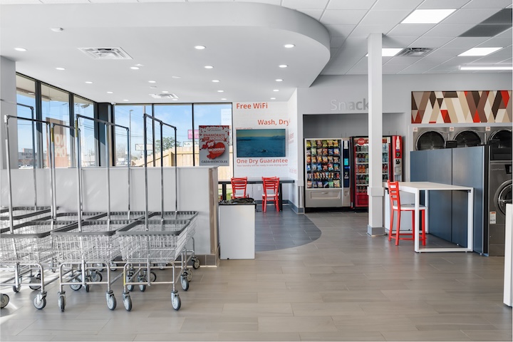 Summary: 4000 sq ft interior buildout converted from retail space to laundry facility.